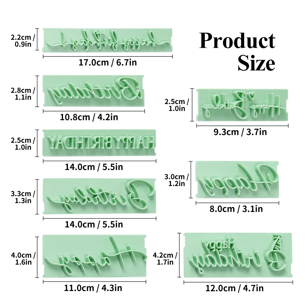 Add personalized messages to your desserts with this 8-piece Best Wishes Letter Stamp Cutter Set. Perfect for cakes, cookies, and fondant decorations, this set includes versatile designs such as “Happy Birthday” and other celebratory phrases to make every treat special. Made from durable, food-grade plastic, these cutters create clean, precise impressions with ease. Ideal for home bakers, pastry chefs, and DIY enthusiasts, the set helps you add heartfelt details to your baked creations effortlessly. Simply press the stamp into fondant, gum paste, or cookie dough for a professional finish. Reusable and easy to clean, these molds make decorating faster and more creative. Perfect for birthdays, holidays, weddings, and any occasion that deserves a sweet message.