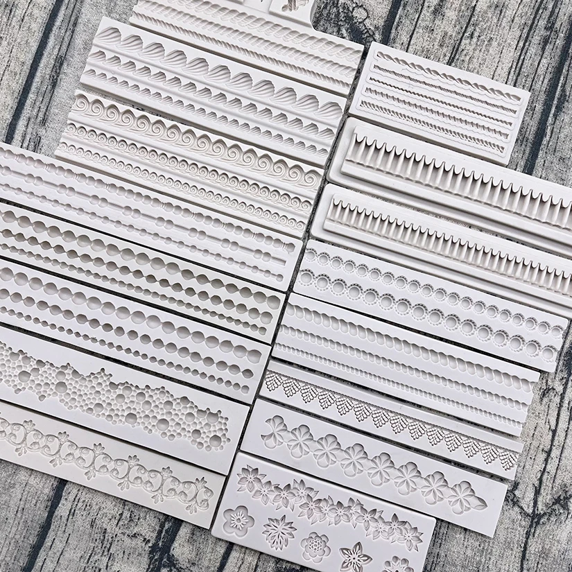 Add elegance and detail to your cakes with this Silicone Lace Fondant Cake Mold. Featuring intricate pearl, wave, flower, and gemstone patterns, this flexible mold helps you create beautiful decorative borders and designs with ease. Made from high-quality, food-grade silicone, it’s non-stick, heat-resistant, and easy to clean—perfect for repeated use in any bakery or home kitchen. Ideal for fondant, gum paste, chocolate, or sugarcraft, this mold allows you to achieve professional-quality results effortlessly. Whether decorating wedding cakes, birthday cakes, or desserts, it adds a luxurious touch to every creation. The soft, flexible design ensures easy release without damaging delicate details. Perfect for bakers and cake artists who want to bring sophistication and creativity to their edible art.