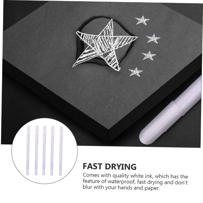 Enhance your artwork with this 5-piece White Permanent Marker Pen Set, designed for smooth, precise, and vivid white lines. Each pen features a 0.8mm fine tip that’s perfect for detailed highlights, outlines, and accents in manga, illustration, or craft projects. The premium waterproof ink delivers strong coverage and long-lasting color on a variety of surfaces, including paper, plastic, glass, metal, and even rubber tires. Whether you’re sketching, labeling, or decorating, these markers provide a clean, opaque finish that stands out beautifully against dark backgrounds. The quick-drying, smudge-resistant formula ensures crisp results without fading or bleeding. Ideal for artists, students, and hobbyists, these pens combine reliability and versatility in one sleek design. Durable and comfortable to hold, they’re a must-have tool for precision artwork and creative projects.